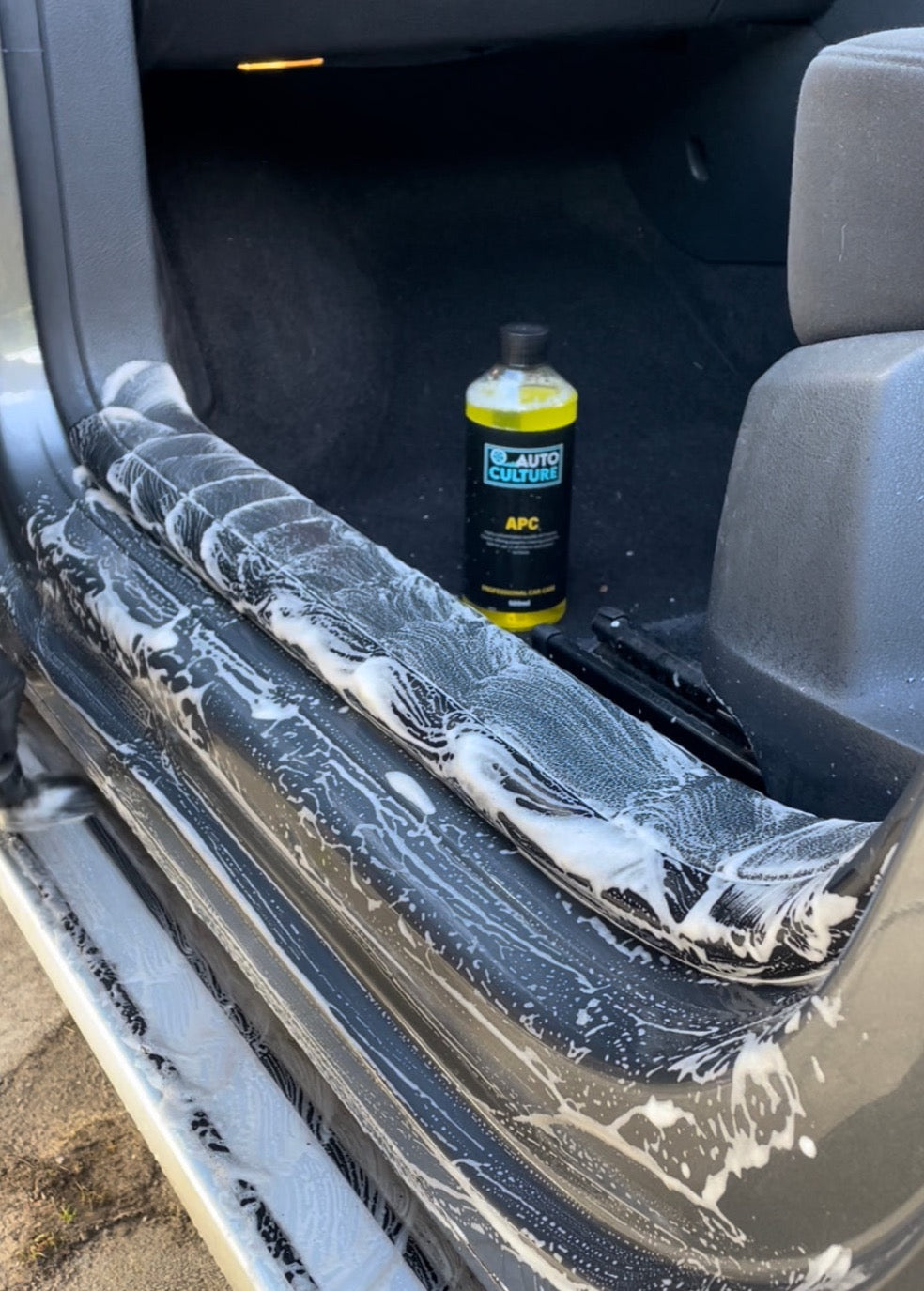 APC can be diluted to different ratios for different tasks or even used neat for extreme built up grime. It can be effective enough to clean wheels and engine bays by attacking oil and grease based soiling but also gentle enough to be used alongside a detailing brush on all aspects of an interior deep clean. It's the one product that can pretty much do it all.