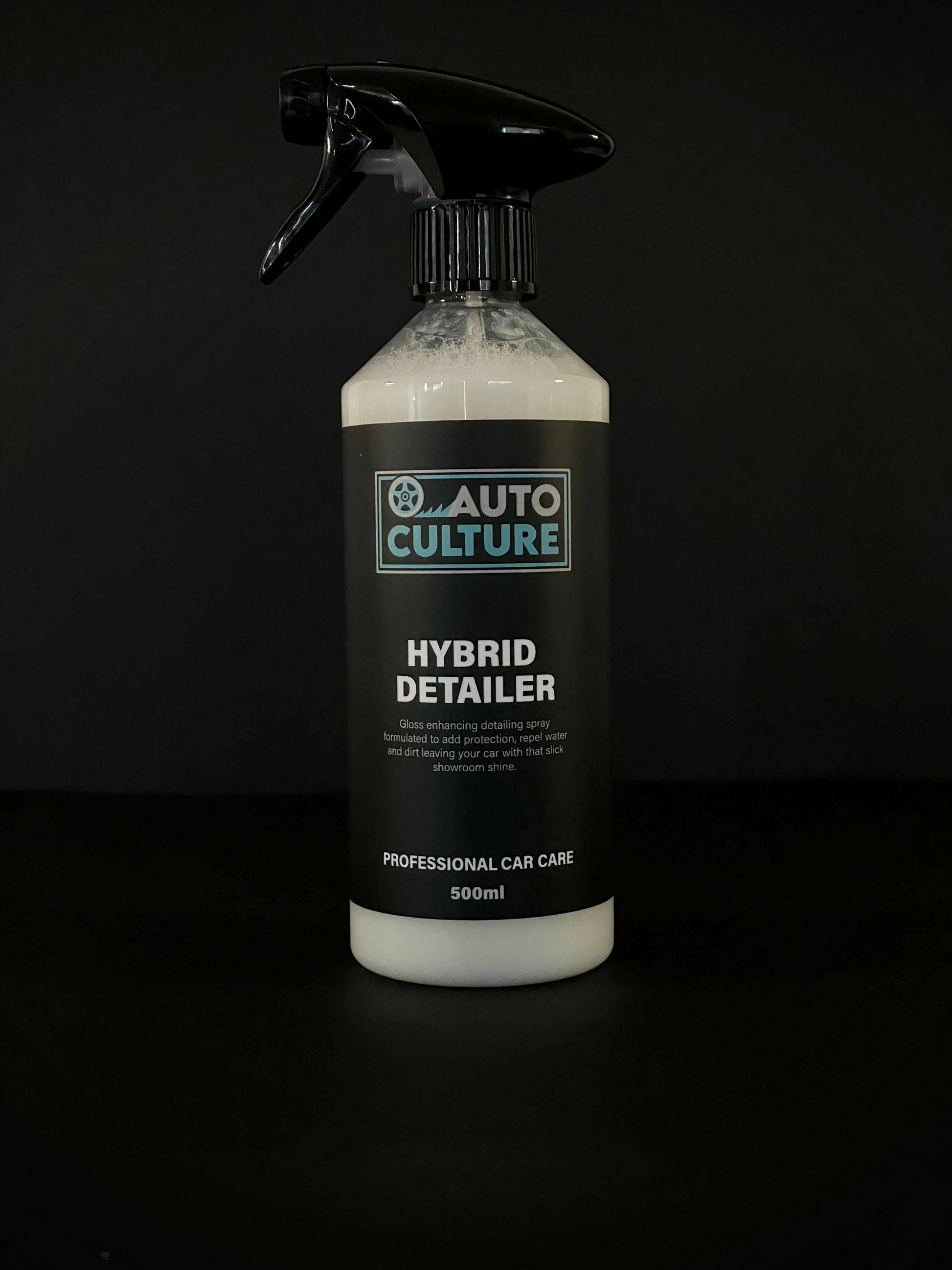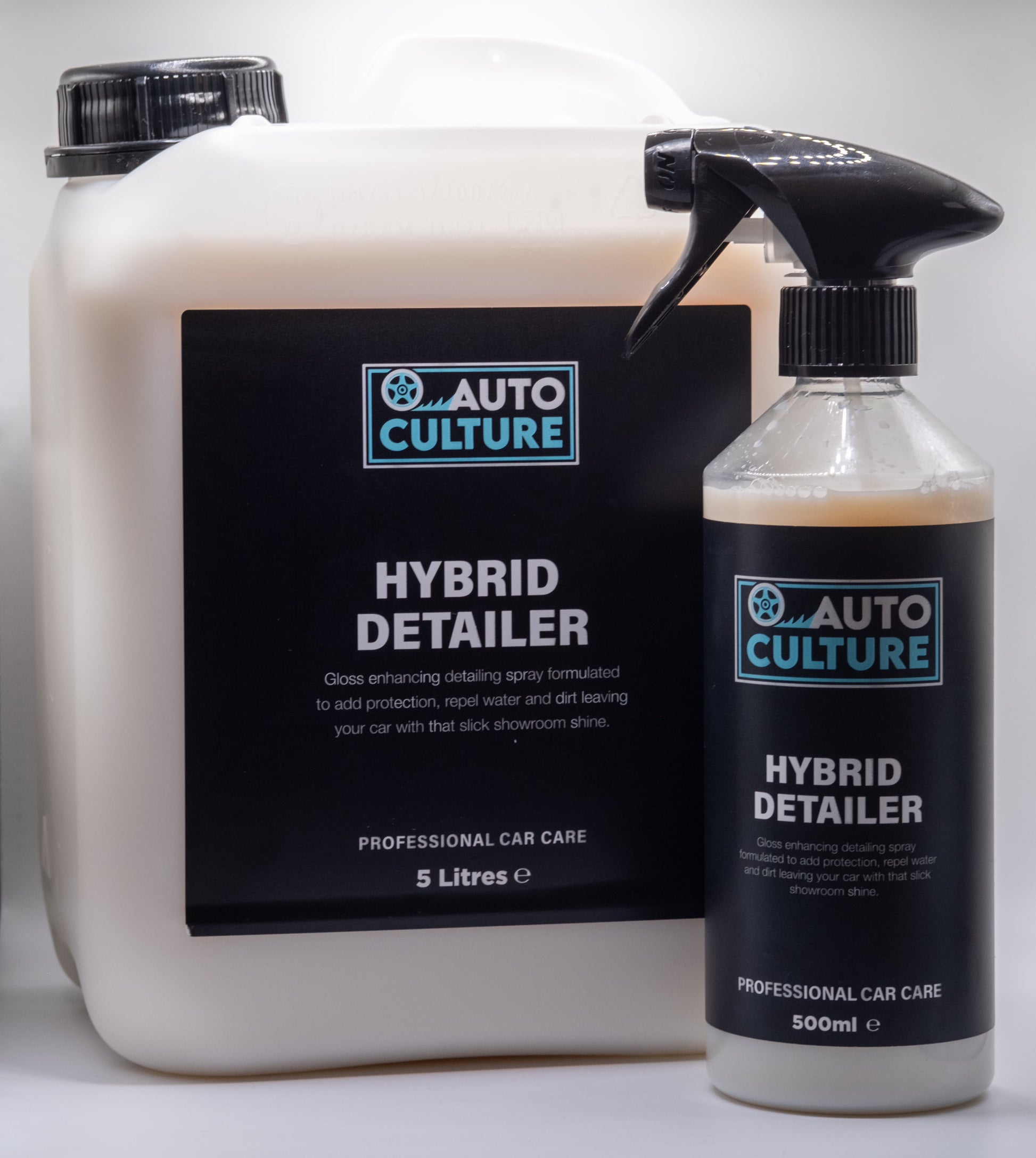 Our Hybrid Detailer uses a unique blend of natural waxes Including carnauba to help fill light scratches and produce stunning gloss and depth. The hybrid compounds are used to help lock in shine whilst adding a hydrophobic coat of protection to your paint work.