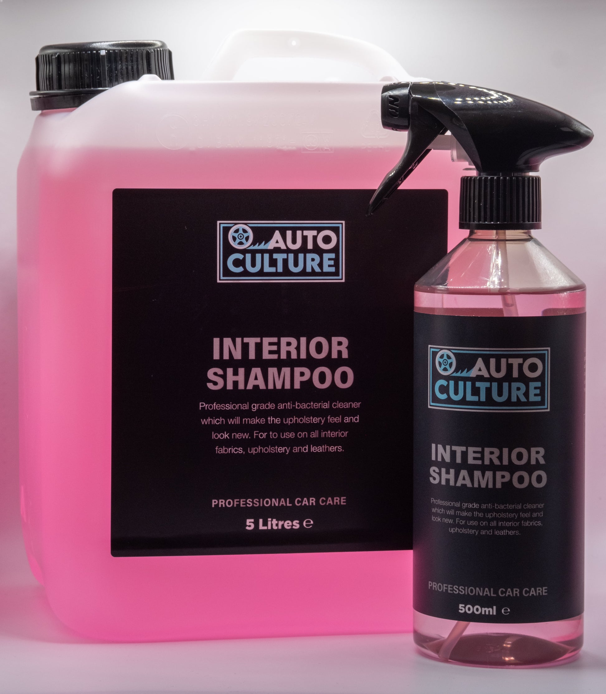 Interior shampoo is an apple scented professional grade anti bacterial cleaning solution which is designed to help remove dirt and stains from your vehicles upholstery. Interior shampoo is also an ideal solution for cleaning soft tops prior to retreating.