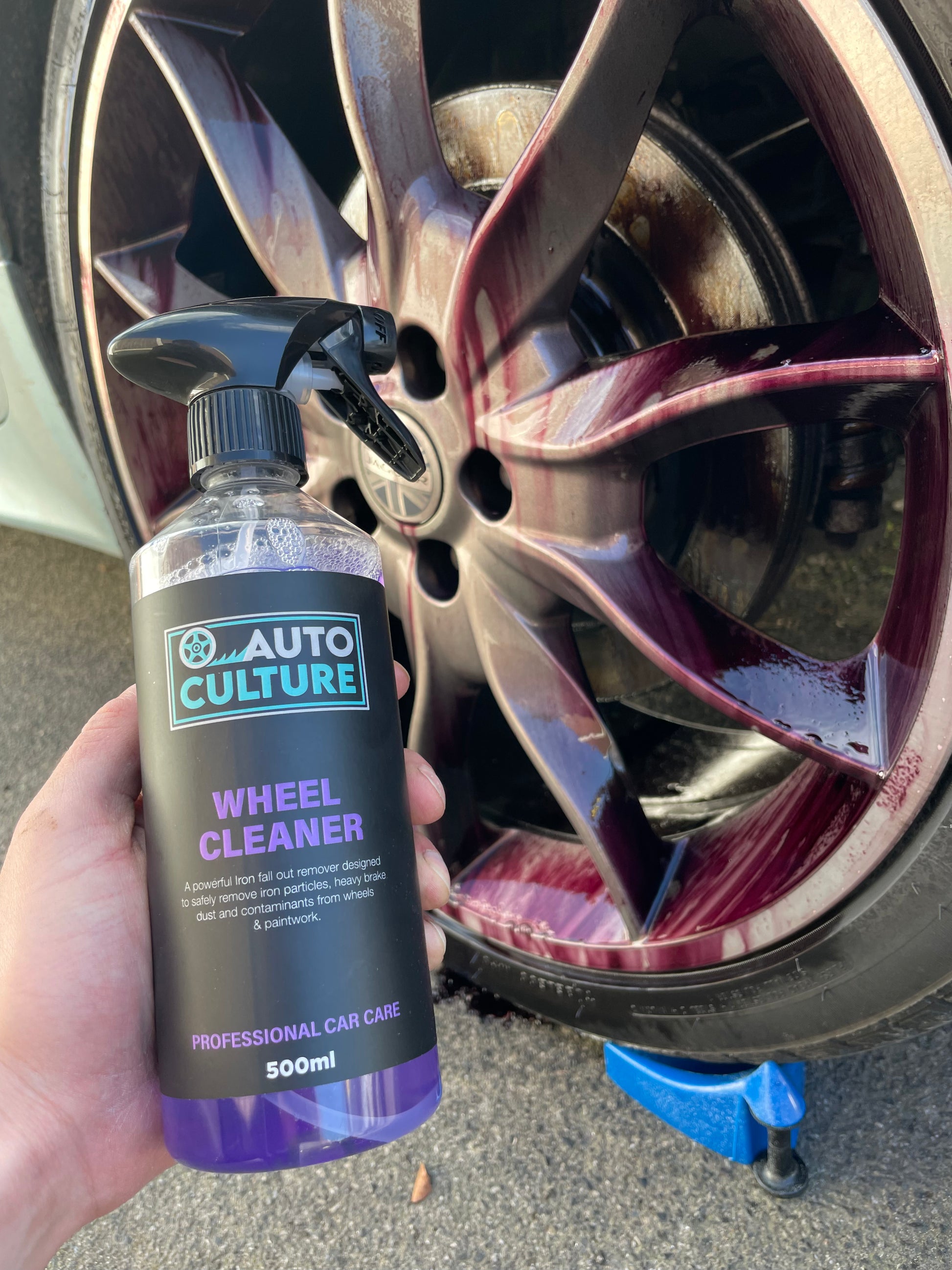 Spray on and leave the product usually between 3-5 minutes to dwell and break down contaminants. For heavily soiled wheels use a soft bristled detailing brush to agitate product. If the product drys out just add a couple more sprays to reactivate. Once done simply rinse off.